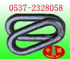 32矿车三环链是由一块材料经九次锻造而成。适用于运输煤炭、矸石、物料等各类矿车和林业木材运输联接,在符合《煤矿保安规程》的前提下也适用于矿山人的联接。