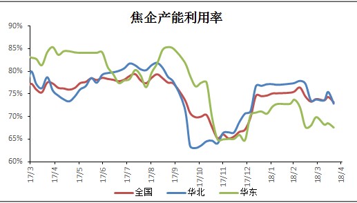 市场价格:本周炼焦煤市场价格继续下行,焦企处于亏损,限产意向较强,炼焦煤按需采购,市场成交不佳。山西地区低硫主焦煤下降100元,降后S0.5、G85价格1500元/吨;山东局部地区炼焦煤价格下降20元,降后A9、G75价格1020元/吨均承兑出厂含税,其余地区有小幅下调情况出现。 炼焦煤供应: 2018年一季度煤炭采选业产能利用率提升5.8%,煤矿产能利用率提高,煤炭产量同比增长。国内煤矿生产正常,动力煤需求减弱,矿务局洗精煤产量略有提高。进口澳洲煤少量成交8.5万吨,蒙古煤通关车数上升至1000车,进口量有所增长。 焦企生产需求:本周中联钢样本焦企开工73.14%,环比上周下降1.14个百分点;部分焦企进入亏损和环保的要求,导致工厂开工下降,炼焦煤需求减少,目前各企业基本对炼焦煤按需采购,而且对后期煤价看空,预期悲观。 总结:本周炼焦煤市场弱势不改,焦炭价格预期偏差,焦企限产呼声高,对煤价形成利空,下周炼焦煤价格仍以下行为主。