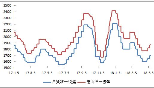 今日国内焦炭市场稳中偏强。焦企订单情况良好,利润得到改善,生产积极性有所提高,心态乐观,有继续提涨意愿。长治地区焦企报价继续拉高,二级焦已报1750元/吨,受此影响其他焦炭主产区焦企或将在近两日普遍提涨。近期高炉开工上升,钢厂焦炭库存持续下降,后期焦炭价格继续上周概率大。 焦炭价格走势图