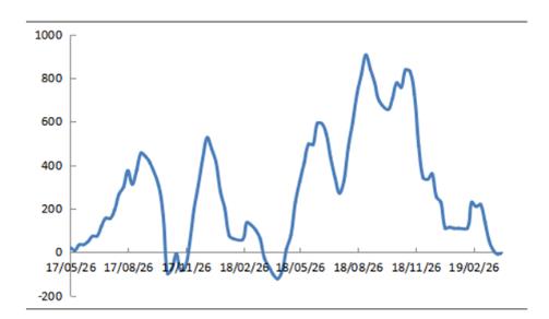 利润:本周钢材价格上升,钢企压价焦炭心理减弱,焦炭价格基本维稳,现山西地区焦企平均亏损3.5元/吨。 图4:主产地焦企利润走势图