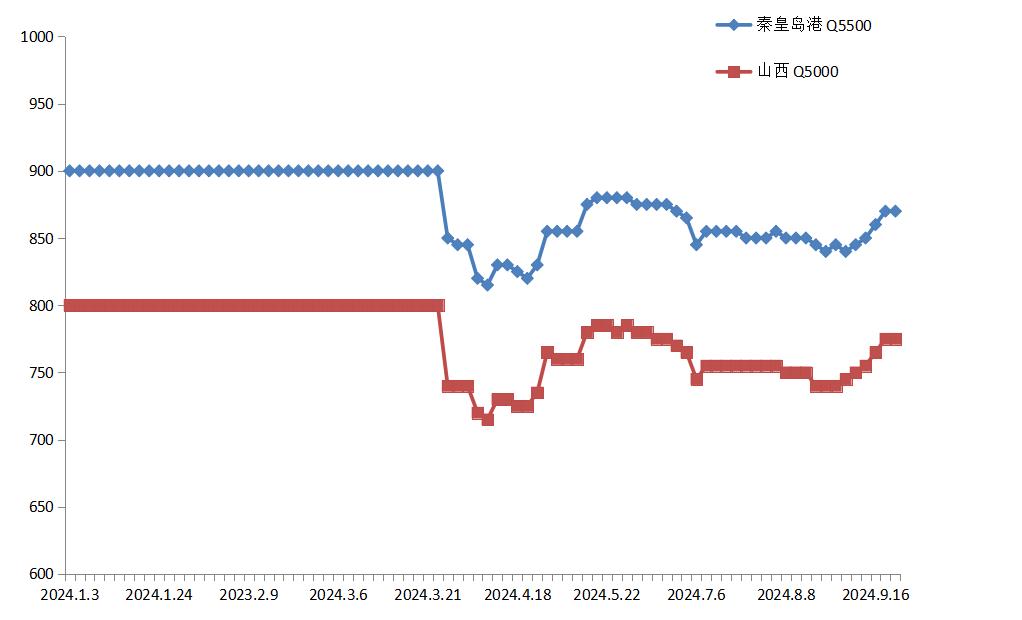 2024年1月-9月秦皇岛港动力煤价格曲线图