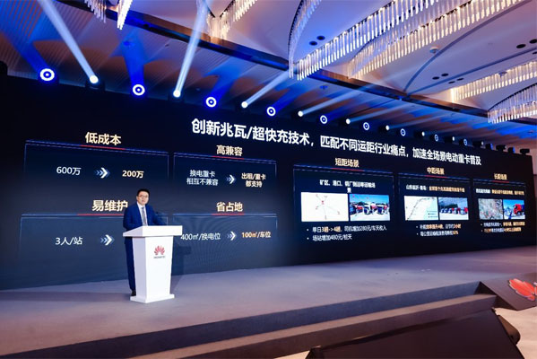 华为数字能源智能充电网络全球业务总裁刘大伟发表致辞 论坛伊始,华为数字能源智能充电网络全球业务总裁刘大伟在致辞中指出,2025年新增重卡预计超15万辆,将为主机厂、电池厂、场站建设方以及充电运营商带来超8000亿的市场机会。电动重卡用电市场潜力巨大,投资回报可观,同时还能显著节约运能成本、减少碳排放。他强调,华为兆瓦超充兼容性强且10年不落后,华为全液冷兆瓦超充将为重卡电动化发展实现短距提效、中距爆发、长距突破等行业变化。