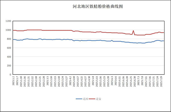 → 2025年1-7月河北地区铁精粉价格曲线