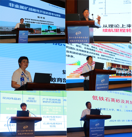 俄罗斯工程院外籍院士、中国地质大学(武汉)/中南大学杨华明教授指出,随着新一轮科技革命和产业变革的深入推进,非金属矿产业进入绿色低碳转型、高质量发展的关键时期,催生出巨大技术创新需求,迫切需要发展非金属矿新质生产力,激活非金属矿产业新动能,服务构建非金属矿行业发展新格局。同时,非金属矿科技届和产业界要自觉肩负“材料强国”的使命担当,抢占新材料新技术制高点、激活产业链内外“双循环”,推动非金属矿行业发展成为具有优势竞争力的产业。 群贤毕至 共襄盛举 5月18日,中国地质大学(武汉)杨华明教授、中南大学唐爱东教授、复旦大学游波教授、武汉理工大学任子杰教授、西南科技大学孙红娟教授、成都理工大学汪灵教授、合肥大学秦广超教授、长沙矿冶研究院张国旺教授、国家电子电路工程技术研究中心柴颂刚所长、中国地质科学院郑州矿产综合利用研究所谭秀民副所长、美国艾狄孚国际矿业有限公司范吉星总经理围绕非金属矿先进加工、检测技术及在生物医药、新能源、环境等领域的高附加值应用技术作了精彩报告。大会汇集了国内顶尖智慧与前沿技术,共同探讨非金属矿产业的发展趋势和未来方向,为推动非金属矿行业的可持续发展贡献智慧和力量。