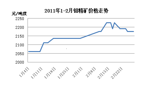 2011年1-2月钼精矿价格走势