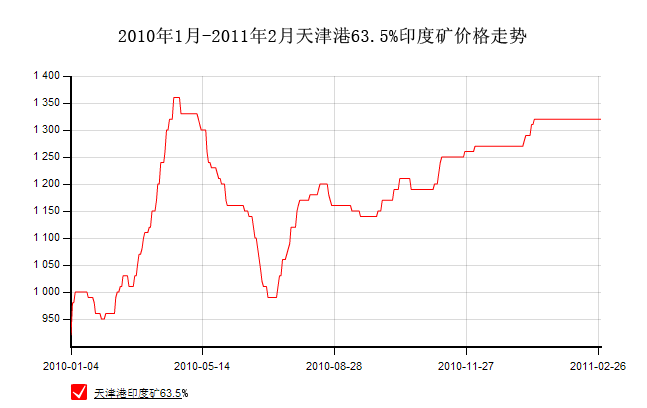 2010年1-2011年2月印度63.5%铁矿石天津港价格走势