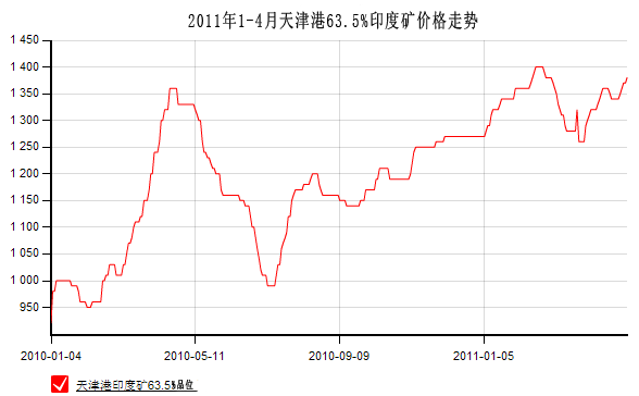 → 2011年1-4月天津港63.5%印度矿价格走势