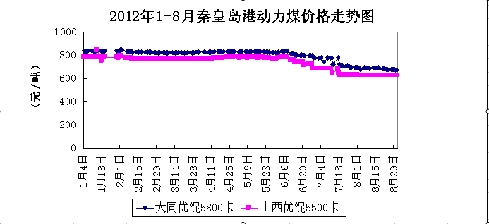 2012年1-8月上海现货动力煤价格走势图
