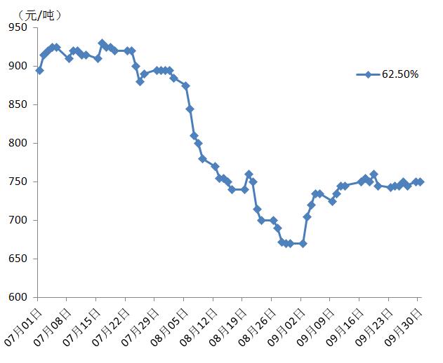 2019年7月-9月 青岛港巴西粗粉价格走势图
