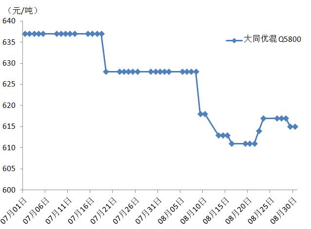 2019年7月-8月 秦皇岛港动力煤价格走势图