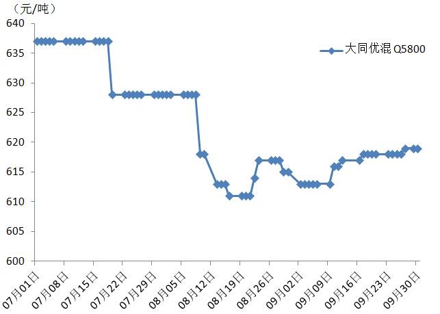 2019年7月-9月 秦皇岛港动力煤价格走势图