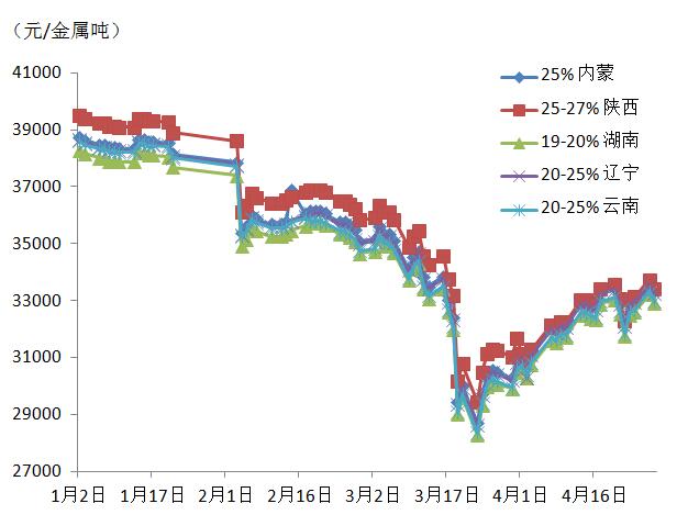 2018年1月-4月 铜精矿价格走势图