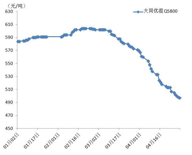 2020年1月-4月 秦皇岛港动力煤价格走势图