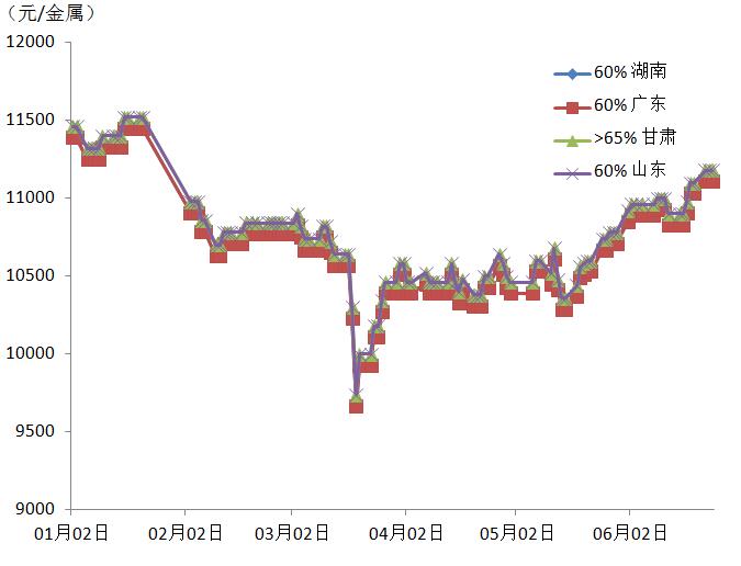 2020年1月-6月 铅精矿价格走势图