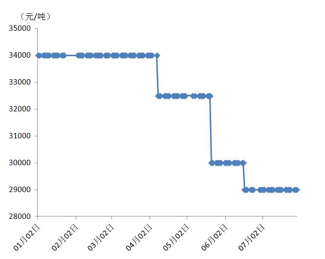 2020年1月-7月 上海现货金属镧价格走势图