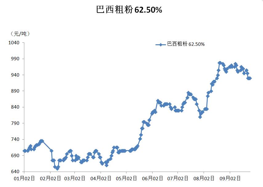 2024年1-9月青岛港巴西粗粉价格曲线…