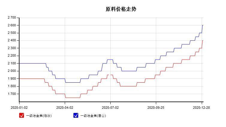 → 2020年1月-12月 一级冶金焦价格走势图