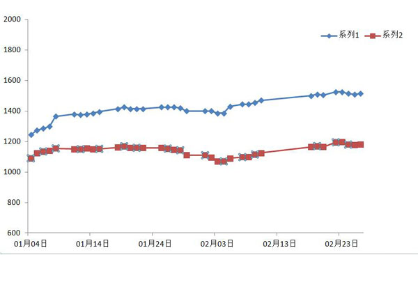 → 2021年1月-2月 河北地区铁精粉价格走势图