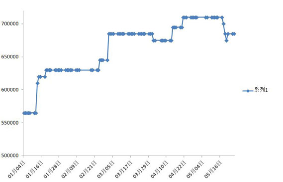 2021年1月-5月 上海现货金属镨价格走势图