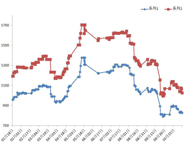→ 2020年1月-10月河北地区铁精粉价格走势图