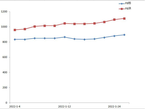 → 2022年1月 天津港PB块、PB粉价格曲线图