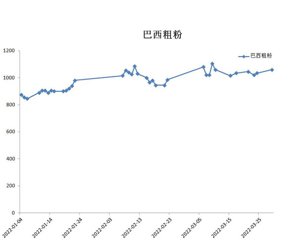 2022年1月-3月青岛港巴西粗粉价格曲线图