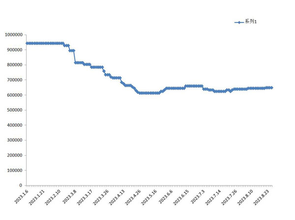 → 2023年1月-8月 上海现货金属镨价格曲线图