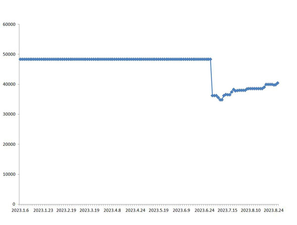 2023年1月-8月上海现货碳酸稀土价格曲线图