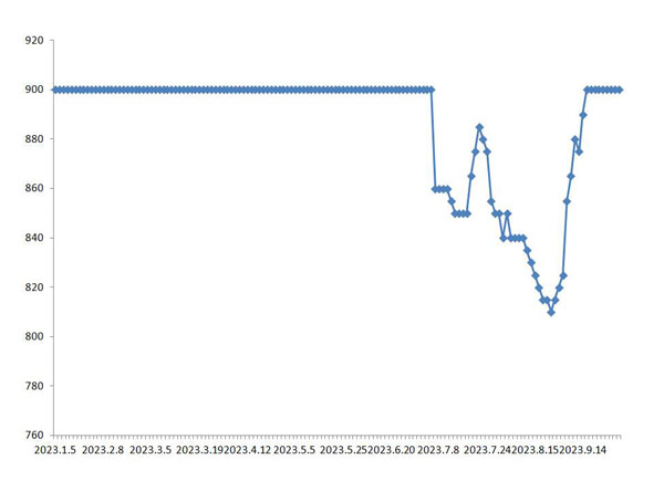 → 2023年1月-9月秦皇岛港动力煤价格行情