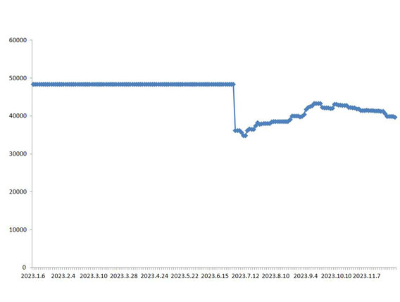 2023年1月-11月上海现货碳酸稀土价格曲线图