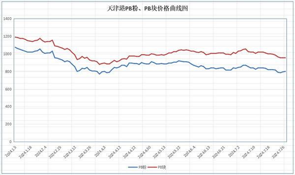 → 2024年1-7月天津港PB粉、PB块价格曲线
