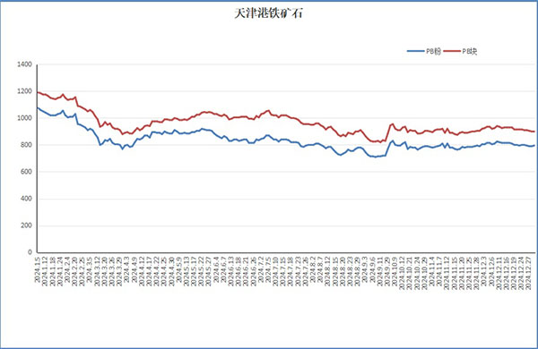 → 2024年1-12月天津港PB粉、PB块价格曲线