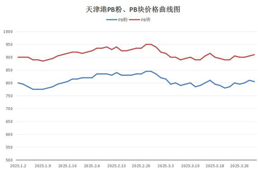 → 2025年1-3月天津港PB粉、PB块价格曲线