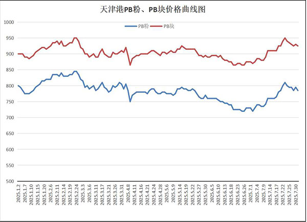 → 2025年1-7月天津港PB粉、PB块价格曲线
