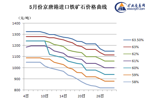 → 5月份港口进口铁矿石价格曲线