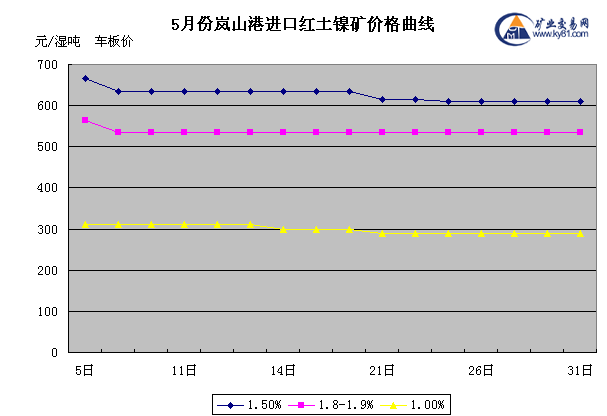 → 2010年5月份岚山港进口红土镍矿价格曲线