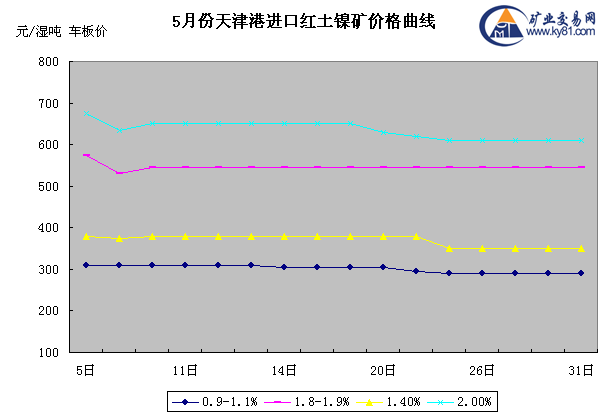 → 2010年5月份天津港进口红土镍矿价格曲线