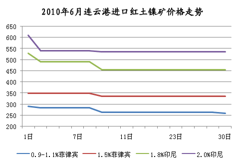 2010年6月连云港进口红土镍矿价格走势