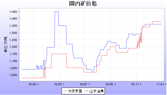 → 2010年2-11月国内65%铁精粉干吨价格走势